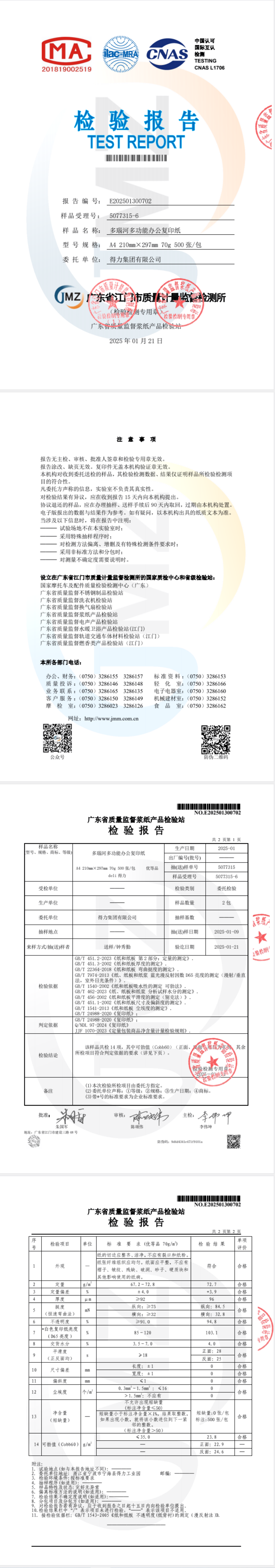 商品名称:得力 7441 多瑙河复印纸 A4/70g/5包/箱 (单位:包) 白