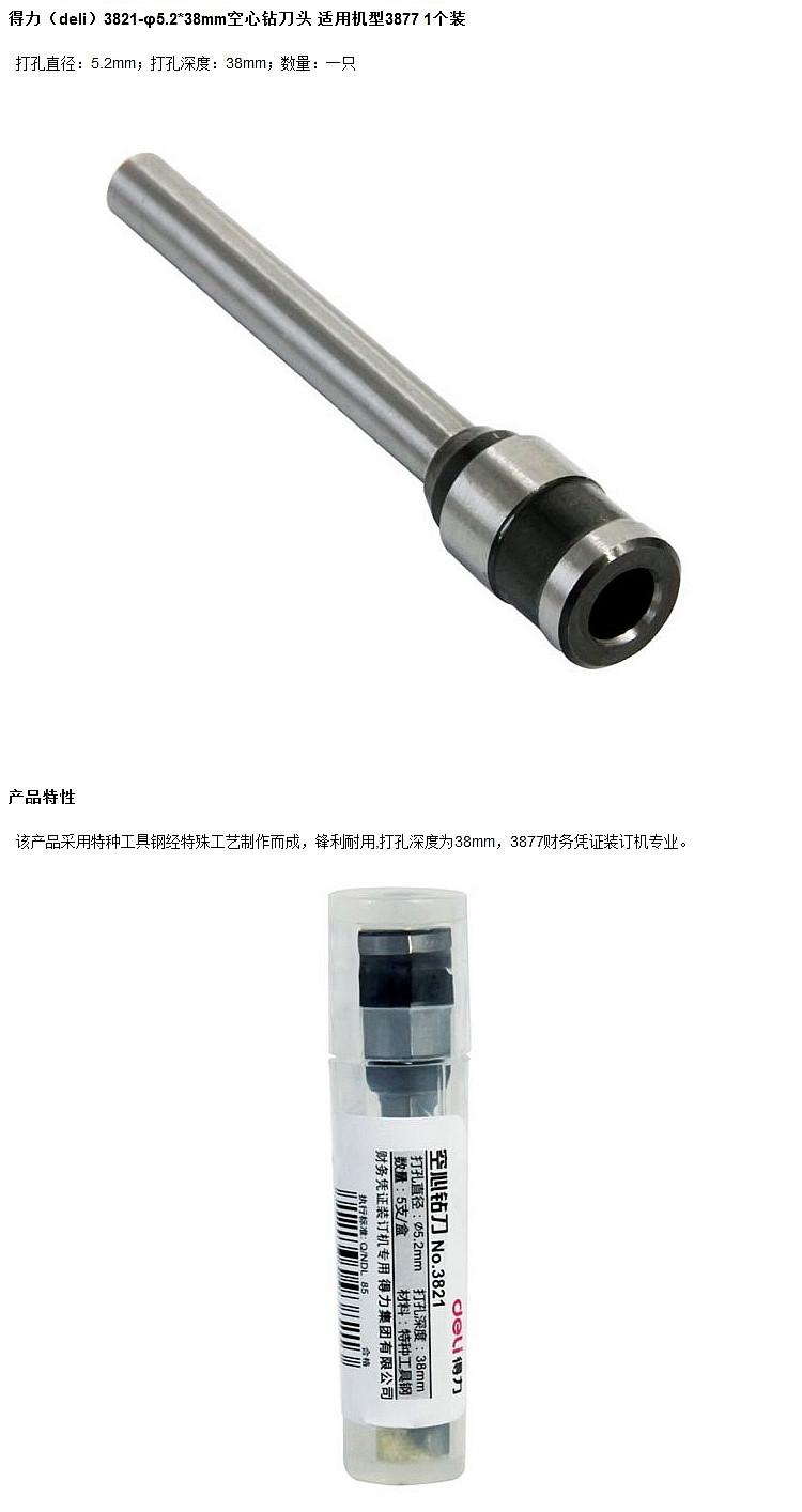 商品标题:得力 3821 空心钻刀 (单位:只) 银色