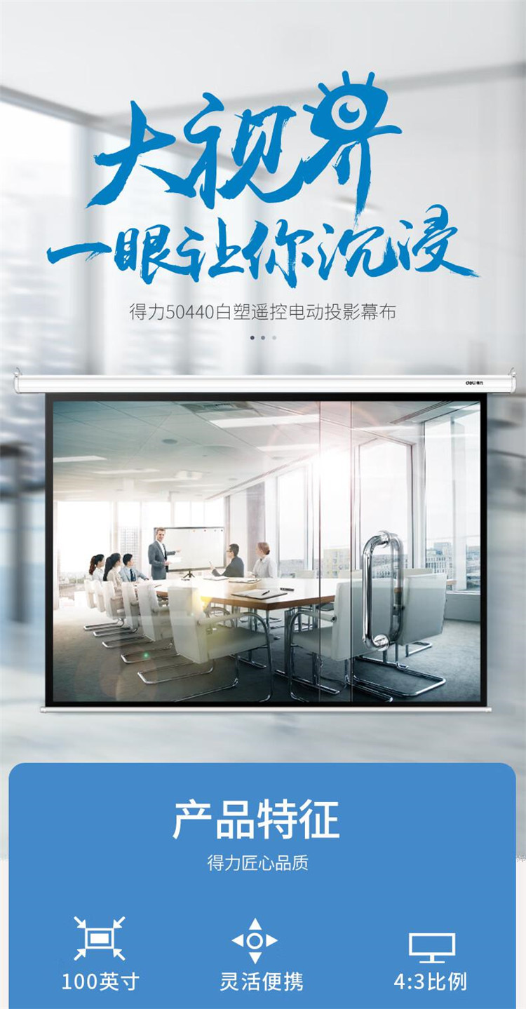 商品标题:得力 50440 电动遥控投影幕 100英寸 4:3 (白色) (单位:副)
