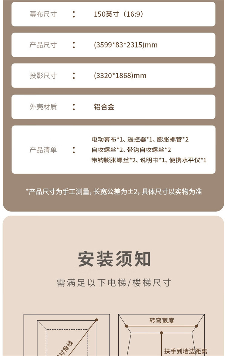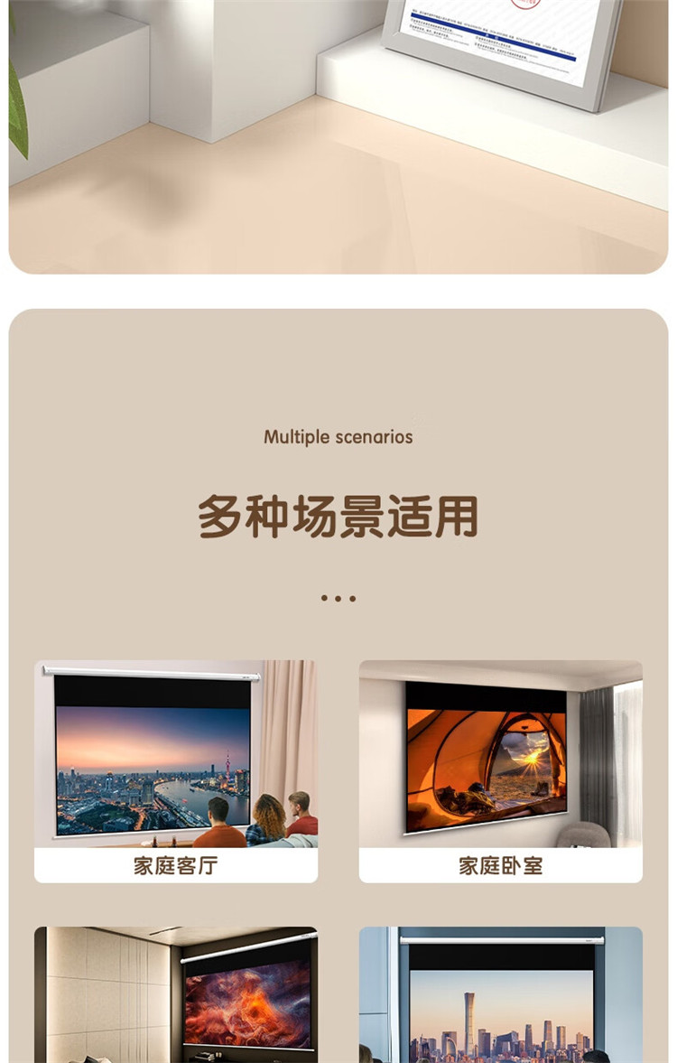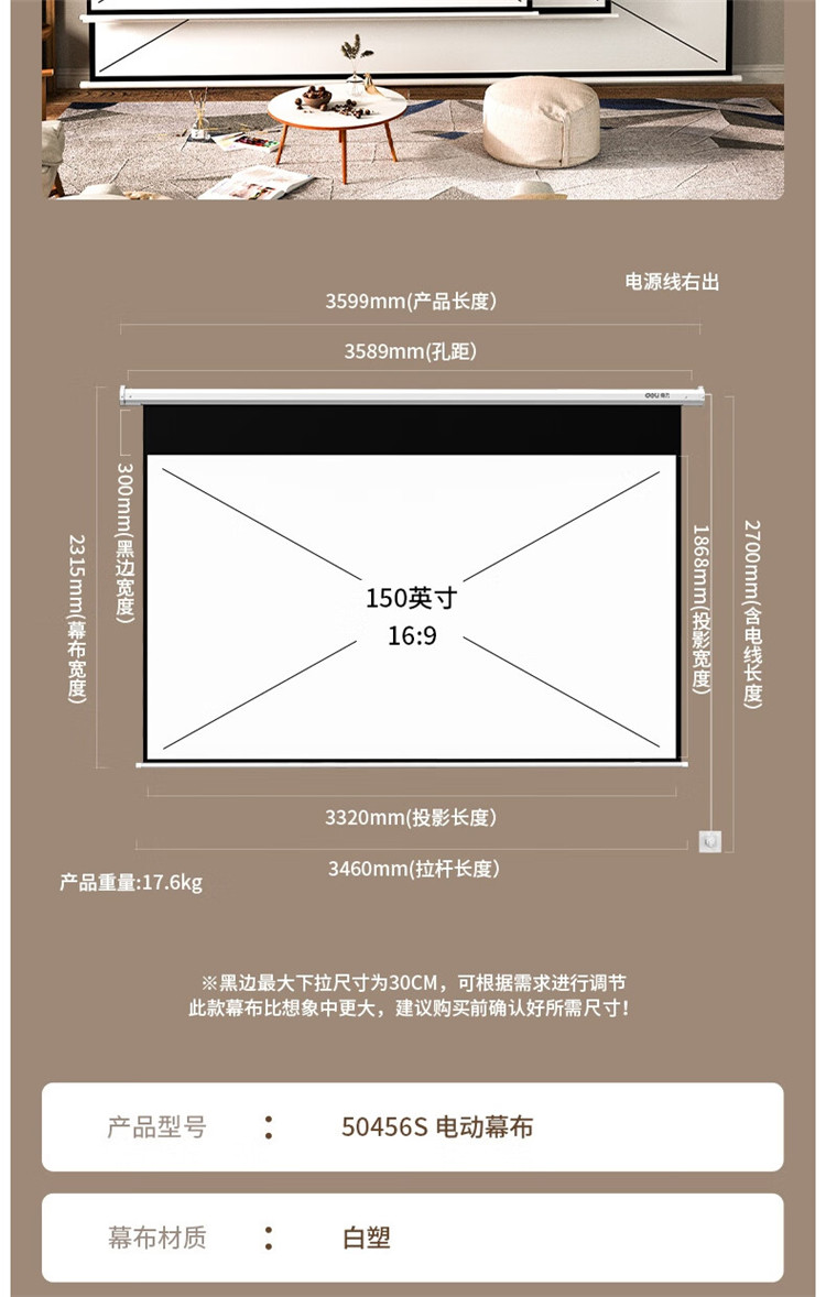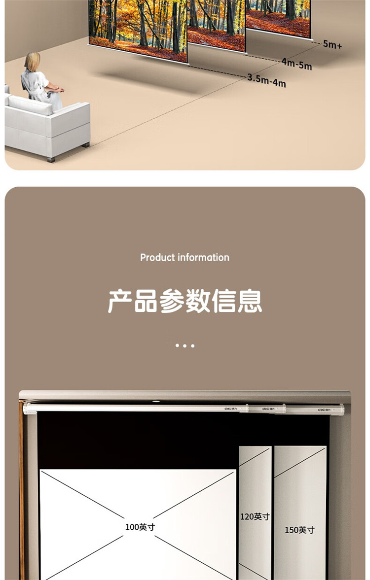 商品标题:得力(deli)150英寸16:9遥控电动投影幕布50456S(白)(支)