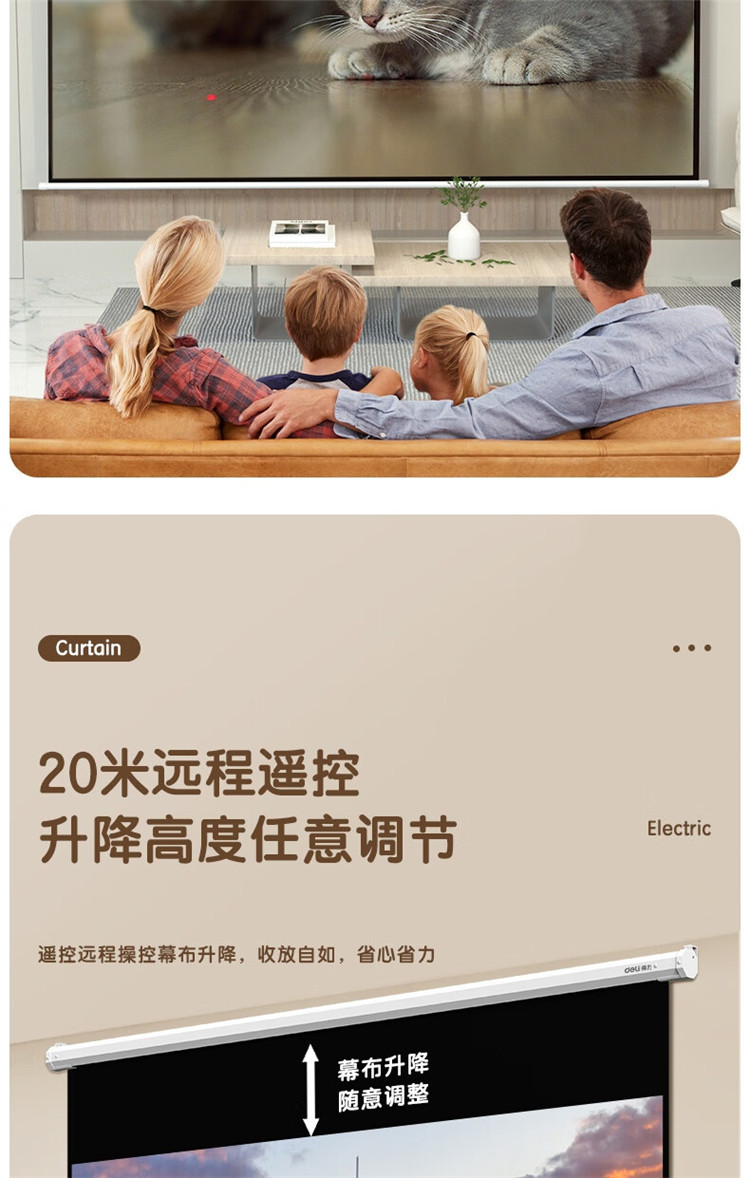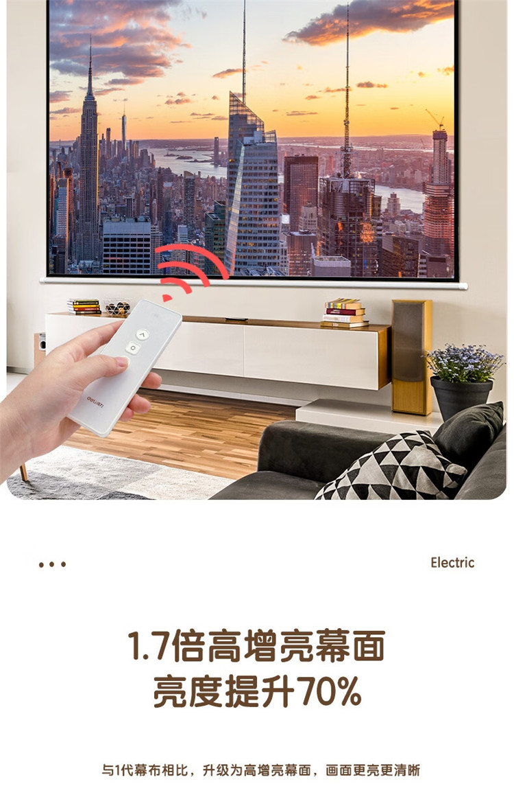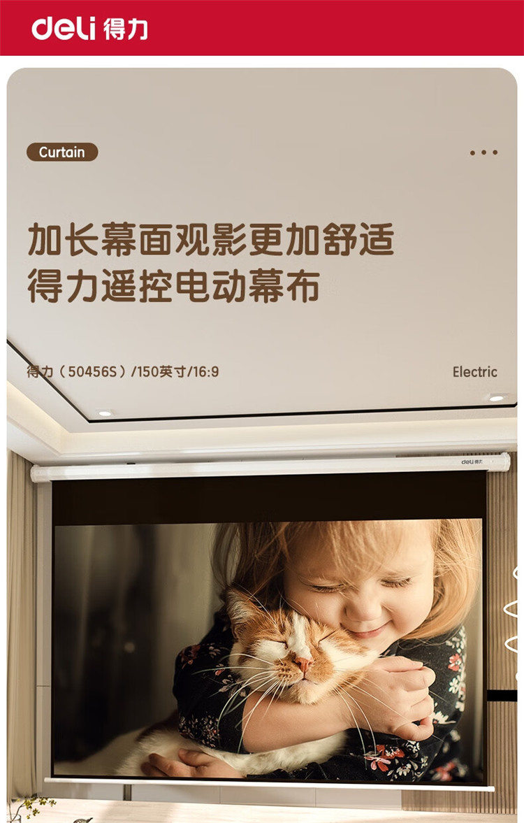 得力(deli)150英寸16:9遥控电动投影幕布50456S(白)(支)