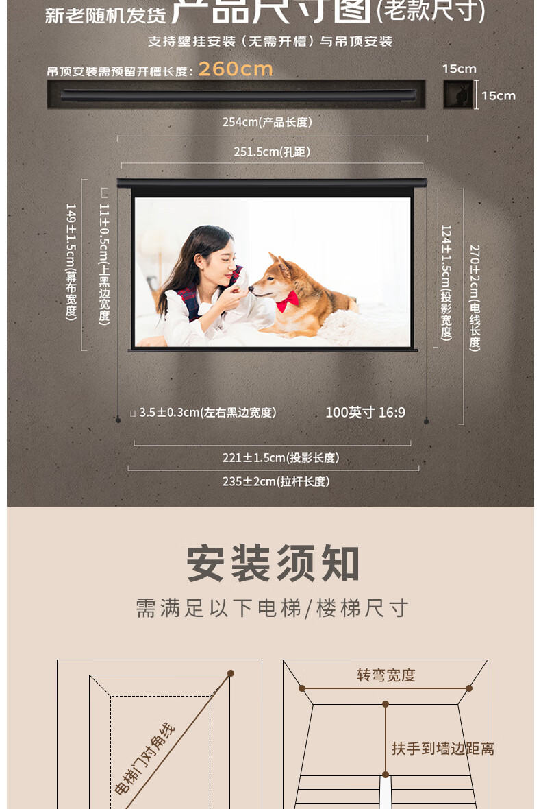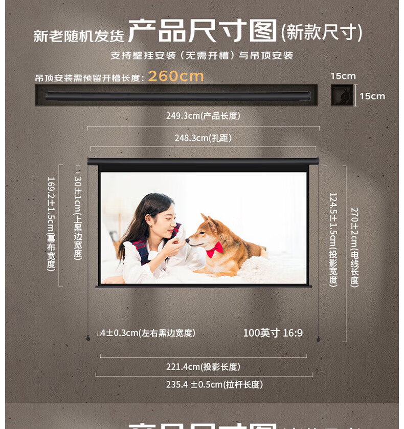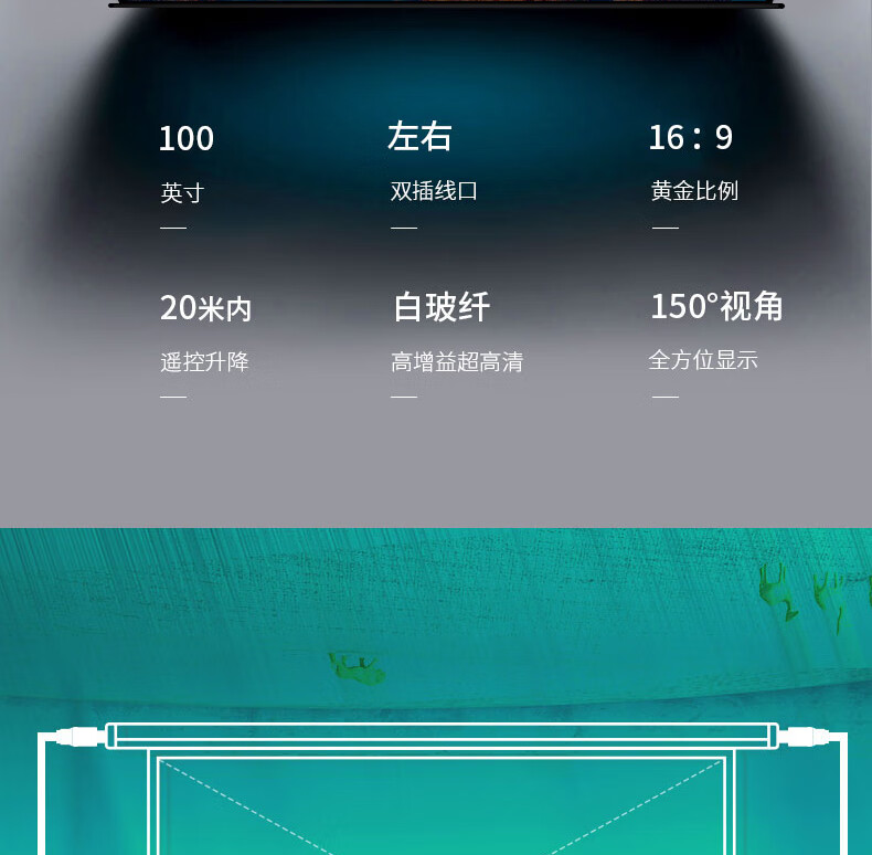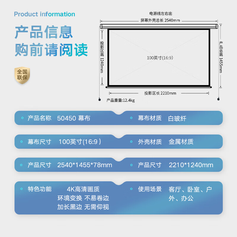 商品标题:得力 50443 电动遥控投影幕 120英寸 16:10 (黑色) (单位:副)