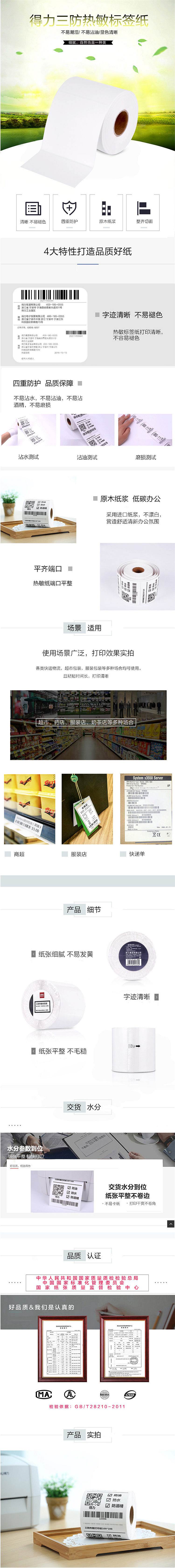 商品标题:得力 11871 三防热敏标签纸(白)(单位:卷)