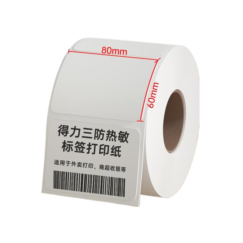 得力12006三防热敏标签纸 1卷/筒 80*60mm-800张(单位:筒)白