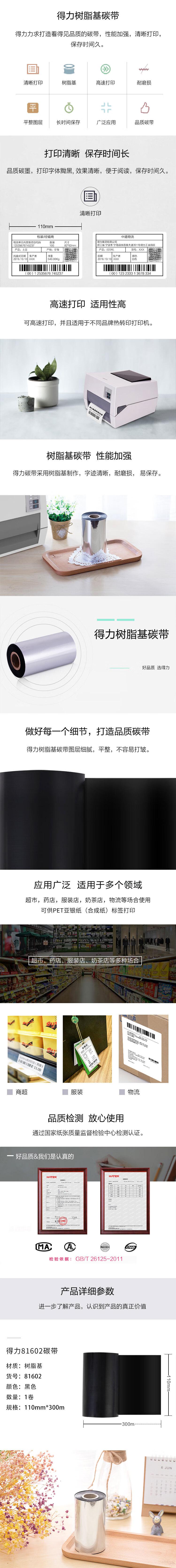 商品标题:得力81602树脂碳带 黑色 110mm*300m(卷)