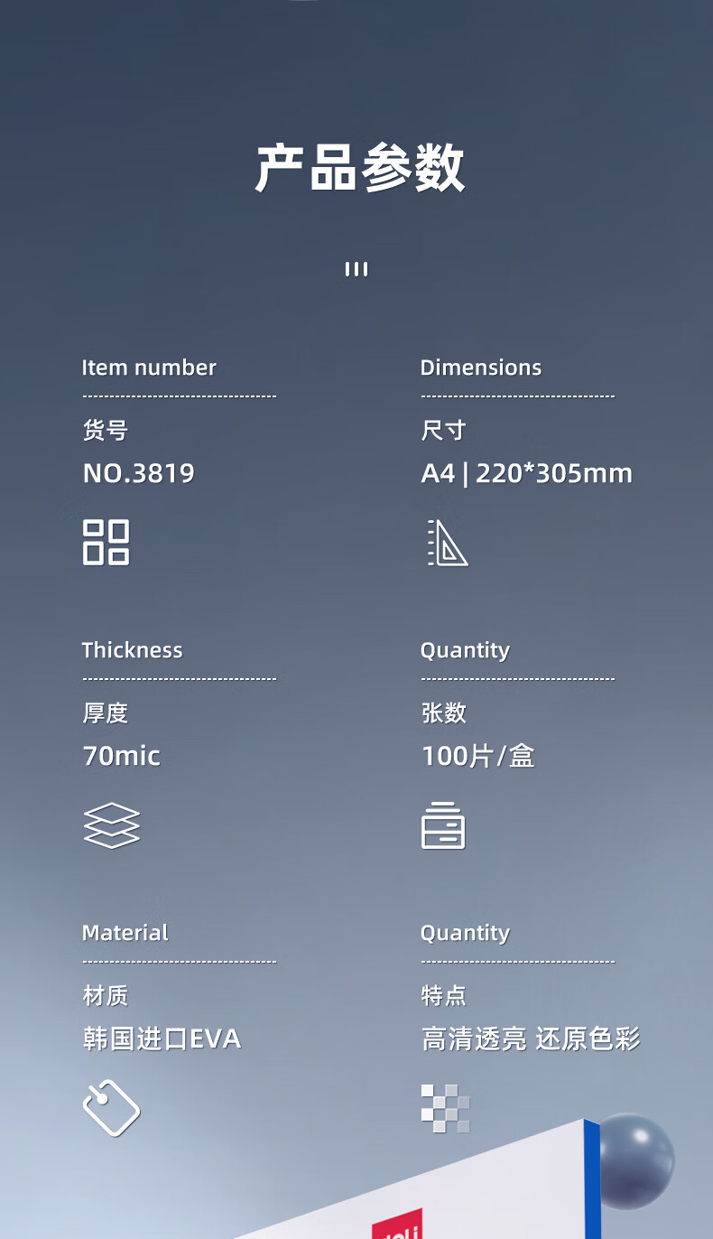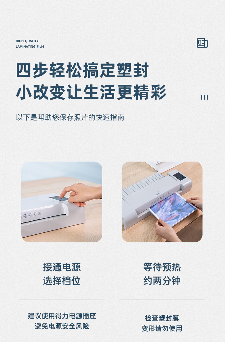 商品标题:得力 3819 塑封膜100片/包 220*305mm A4 70mic(单位:包)透明