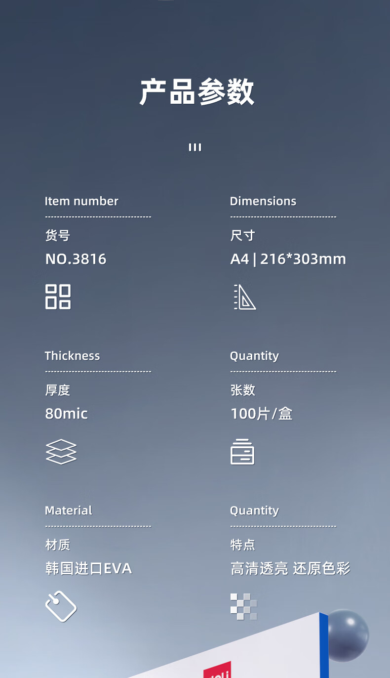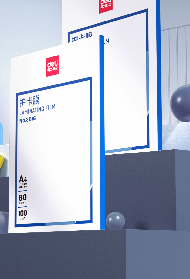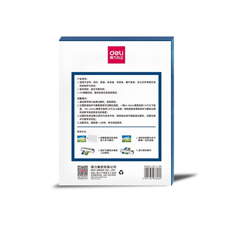 得力(deli)3816标准透明护卡膜/塑封膜 216*303mm/80mic A4 100片/包(包)