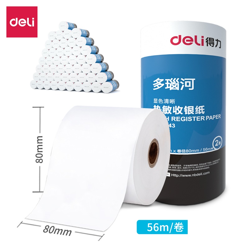 得力 3143 热敏收银纸 80mm*80mm*56m(单位:2卷/筒)