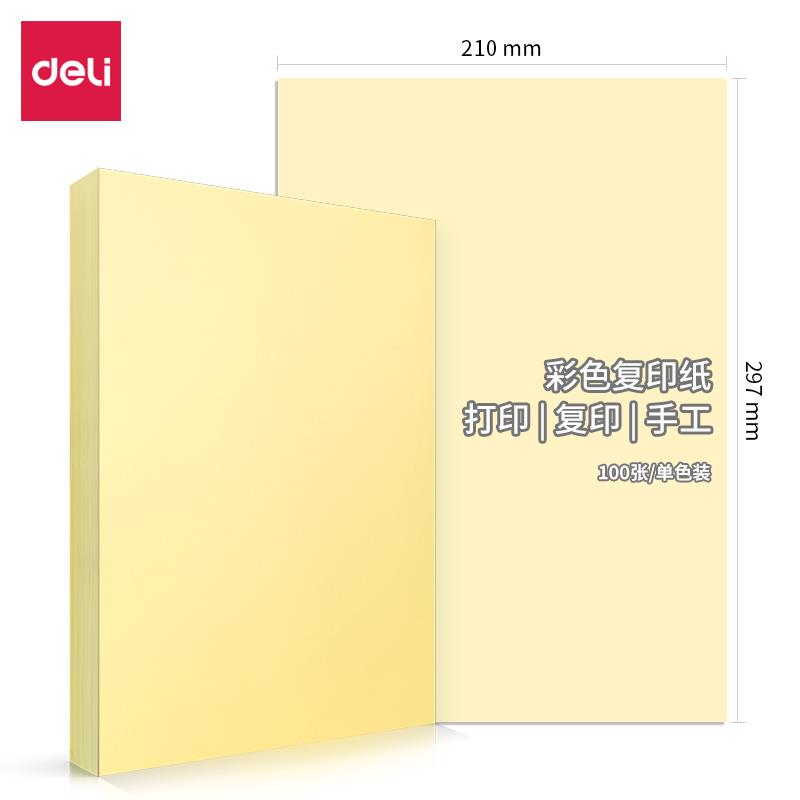 得力(deli)7757彩色复印纸-A4-80g-100张/包 25包/箱(单位:包)浅黄