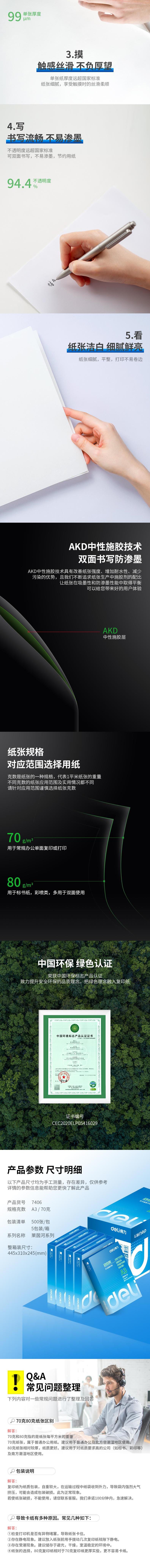 商品标题:得力 7406 莱茵河复印纸 70g/A3 500张/包 5包/箱 (单位:包) 白