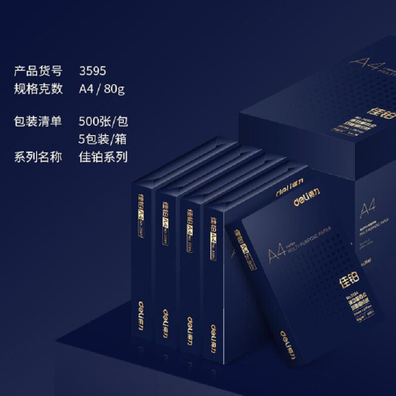 商品标题:得力 3595 佳铂双面复印纸 A4 80g 5包/箱 (单位:包) 白