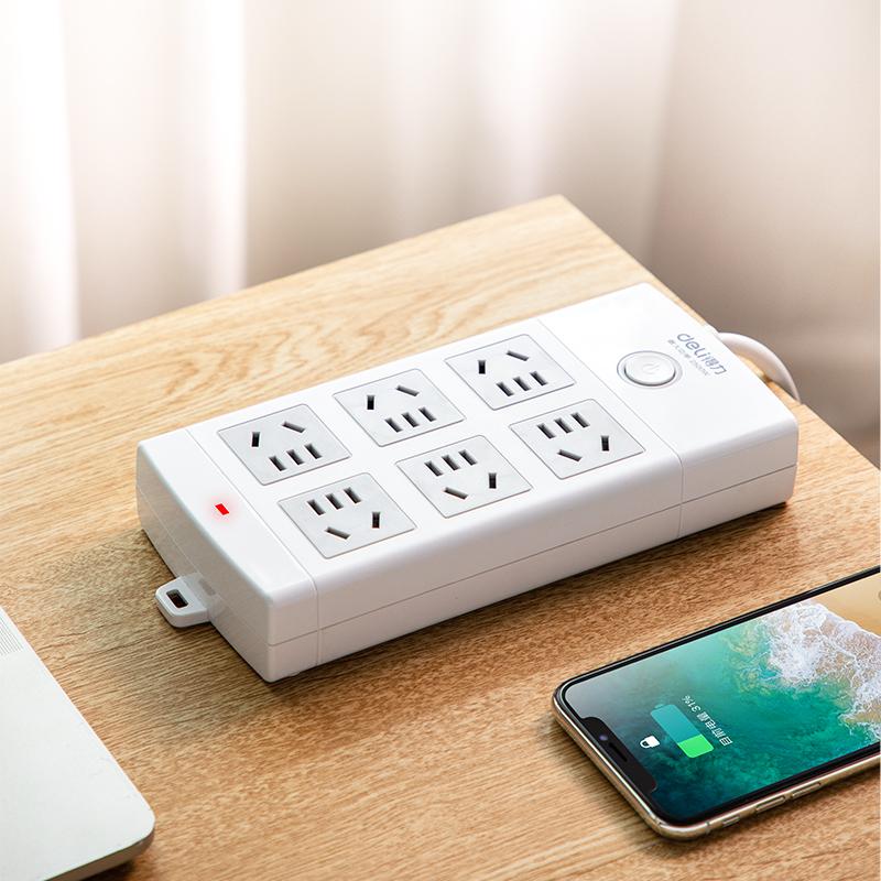 得力18207插座 6组总控 10米 白色(只)