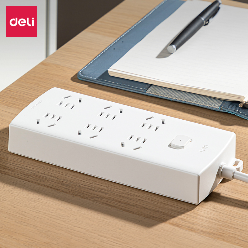 得力LX114(05)莹白系列延长线插座_6组_5米_PE袋装(白)(个)