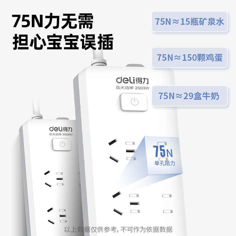 商品标题:得力18158(1.8)延长线插座 4+4 1.8米 白色(个)