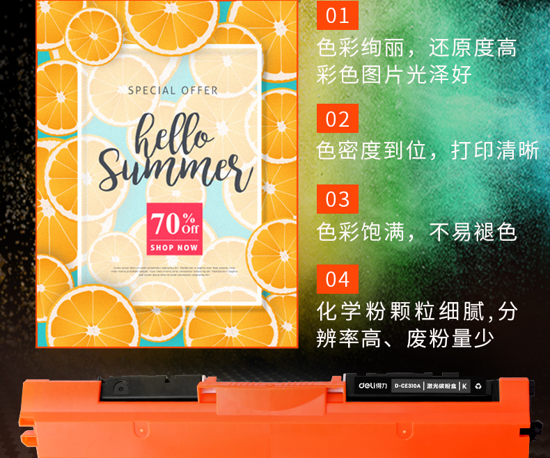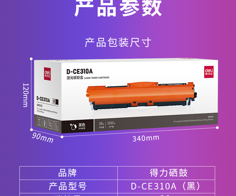 得力(deli)兼容D-CE310A粉盒(鼓粉分离)黑色单支装(适用HP LaserJet CP1025/CP1025nw/M275nw M175a/M175nw系列)打印页数:1200页(单位:支)