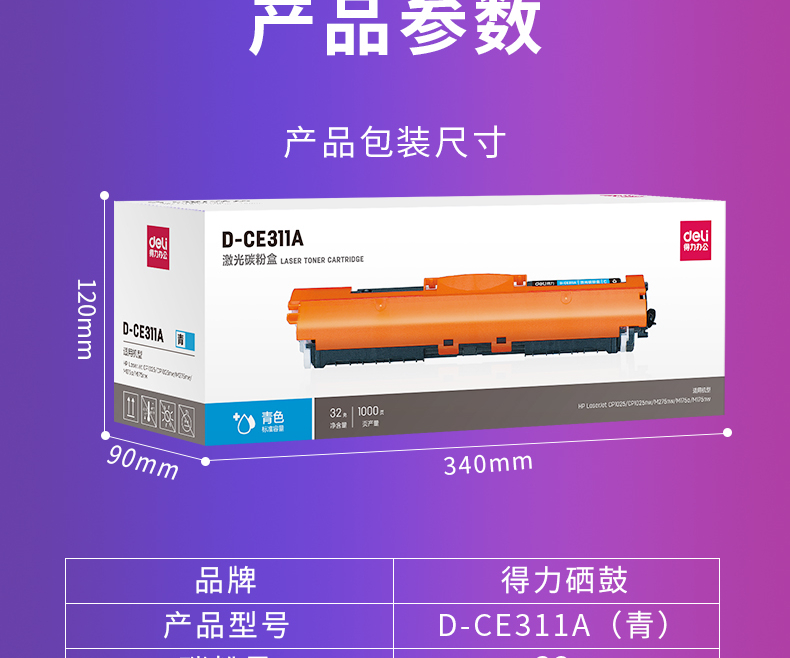 商品标题:得力D-CE311A激光碳粉盒(青)