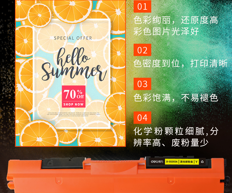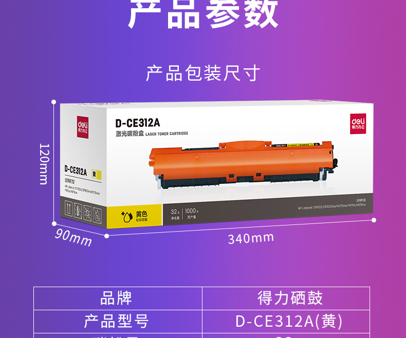 得力(deli)兼容D-CE312A粉盒(鼓粉分离)黄色单支装(适用HP LaserJet CP1025/CP1025nw/M275nw M175a/M175nw系列)打印页数:1000页(单位:支)