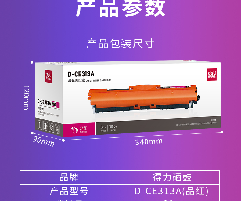 商品标题:得力D-CE313A激光碳粉盒(品红)