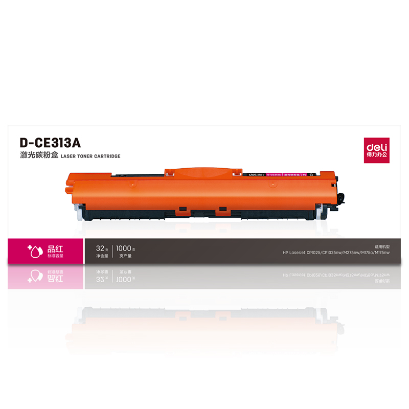 得力(deli)兼容D-CE313A粉盒(鼓粉分离)品红单支装(适用HP LaserJet CP1025/CP1025nw/M275nw M175a/M175nw系列)打印页数:1000页(单位:支)