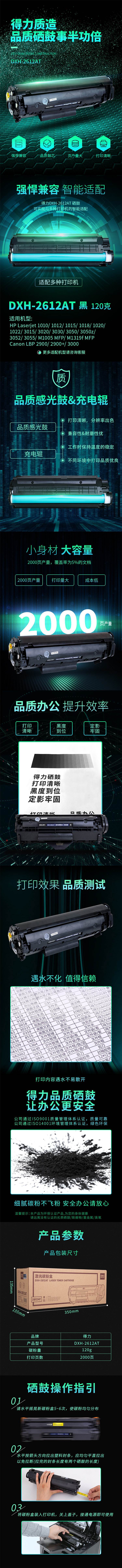 得力(deli)兼容DXH-2612AT硒鼓(鼓粉一体)黑色单支装(适用HPLaserJet1010/1012/1015/1018/1020/1022/3015系列)打印页数:2000页(单位:支)