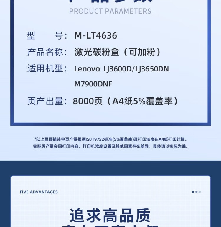 得力(deli)尚影系列兼容M-LT4636粉盒(鼓粉分离)黑色单支装(适用联想 LJ3600D/LJ3650DN/M7900DNF)打印页数:8000(单位:支)