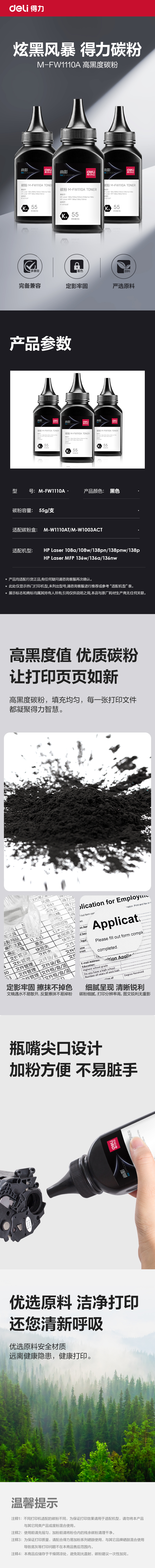 商品标题:得力M-FW1110A碳粉(黑色)(瓶)