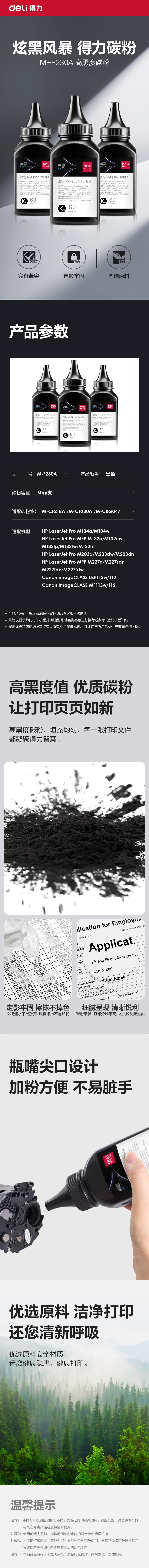 商品标题:得力M-F230A碳粉(黑色)(瓶)