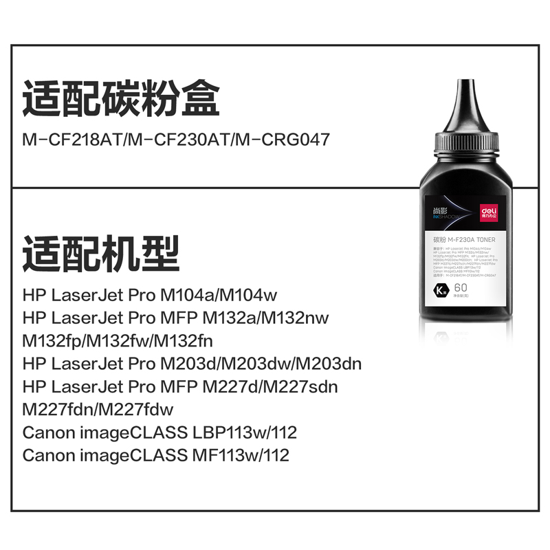 得力(deli)尚影系列兼容M-F230A(碳粉瓶)黑色单支装(适用惠普LaserJet Pro M104a/M104w)容量:60g(单位:瓶)