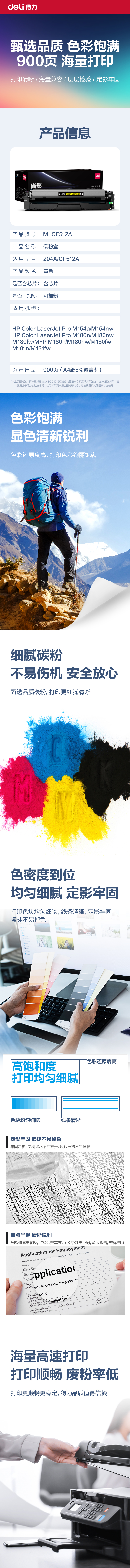 得力(deli)尚影系列兼容M-CF512A硒鼓(鼓粉一体)黄色单支装(适用惠普Color LaserJet Pro M154a/M154nw/M180n/M180nw/M180fw/MFP)打印页数:900(单位:支)