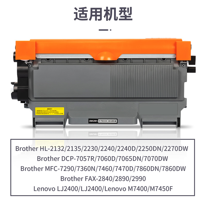 得力(deli)尚影系列兼容M-TN2225粉盒(鼓粉分离)黑色单支装(适用兄弟HL-2132/2135/2230/2240/2240D/2250DN/2270DW/DCP-7057R/7060D/7065DN/7070DW)打印页数:2600(单位:支)