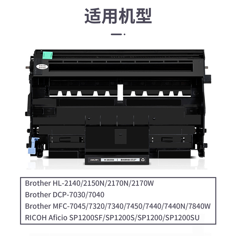 商品标题:得力(deli)兼容M-DR2150鼓组件(鼓粉分离)黑色单支装(适用兄弟HL-2140/2150N/2170N/2170W)打印页数:12000(单位:支)