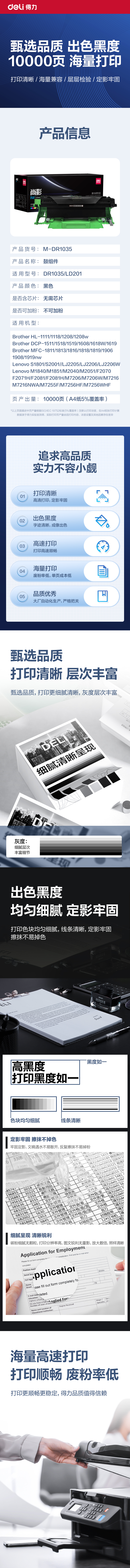 得力(deli)尚影系列兼容M-DR1035鼓组件(鼓粉分离)黑色单支装(适用兄弟HL-1111/1118/1208/1208w/DCP-1511/1518/1519/1608/1618W/1619)打印页数:10000(单位:支)