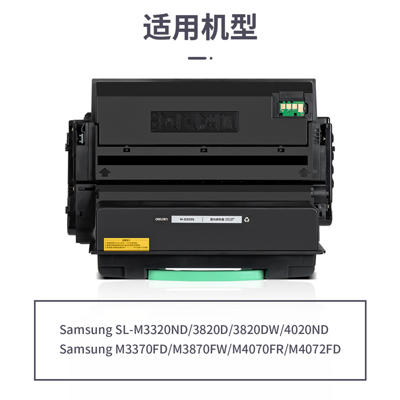 得力(deli)尚影系列兼容M-D203S粉盒(鼓粉分离)黑色单支装(适用三星SL-M3320ND/3820D/3820DW/4020ND/M3370FD/M3870FW/M4070FR/M4072FD)打印页数:5000(单位:支)