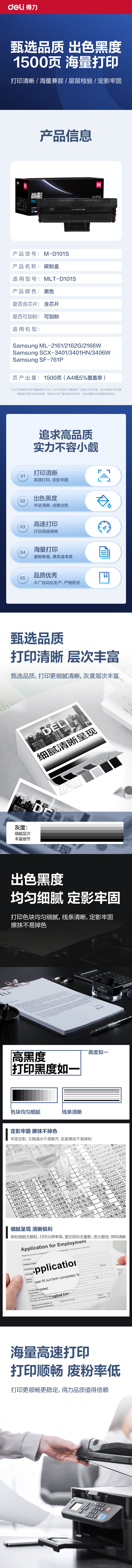 得力(deli)尚影系列兼容M-D101S硒鼓(鼓粉一体)黑色单支装(适用三星ML-2161/2162G/2166W/SCX-3401/3401HN/3406W/SF-761P)打印页数:1500(单位:支)