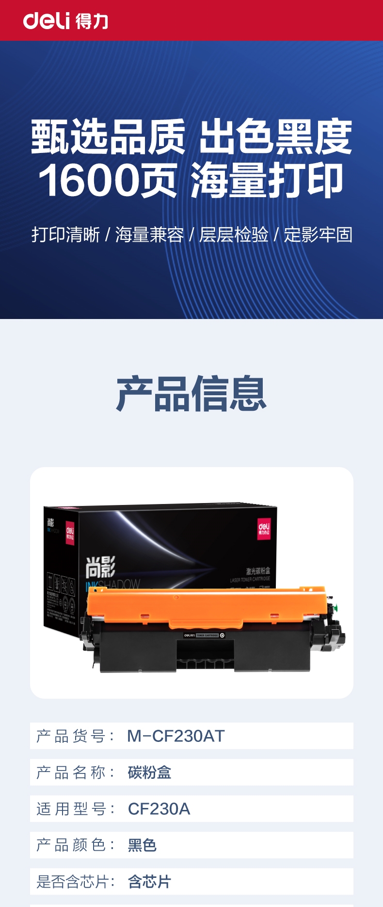 得力(deli)尚影系列兼容M-CF230AT粉盒(鼓粉分离)黑色单支装(适用惠普LaserJet Pro M203d/M203dw/M203dn)打印页数:1600(单位:支)