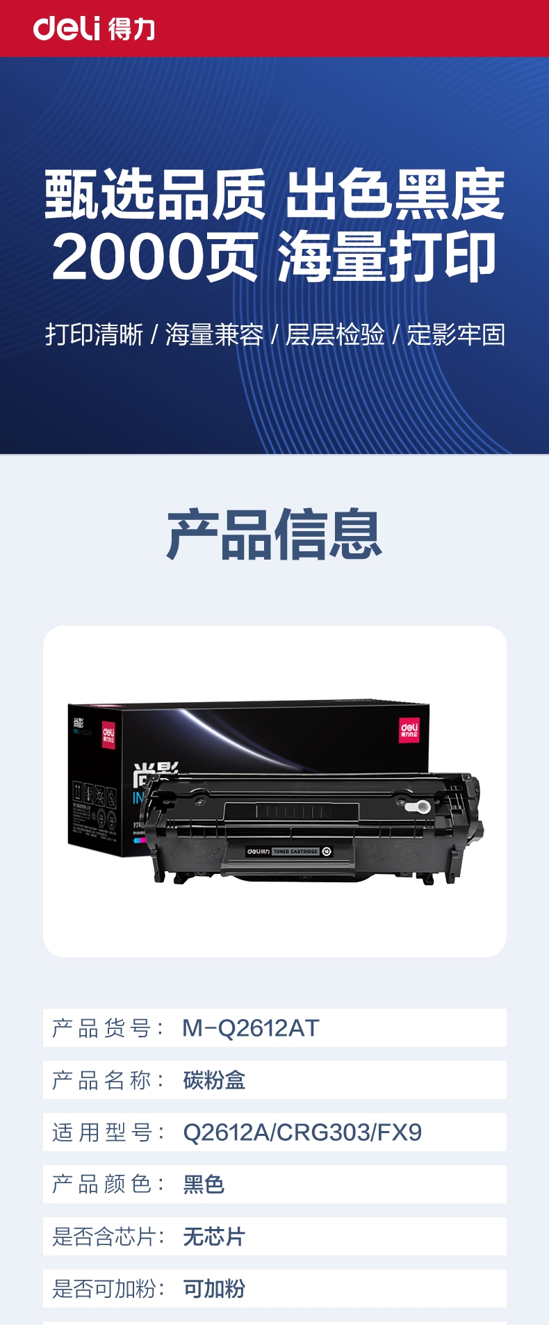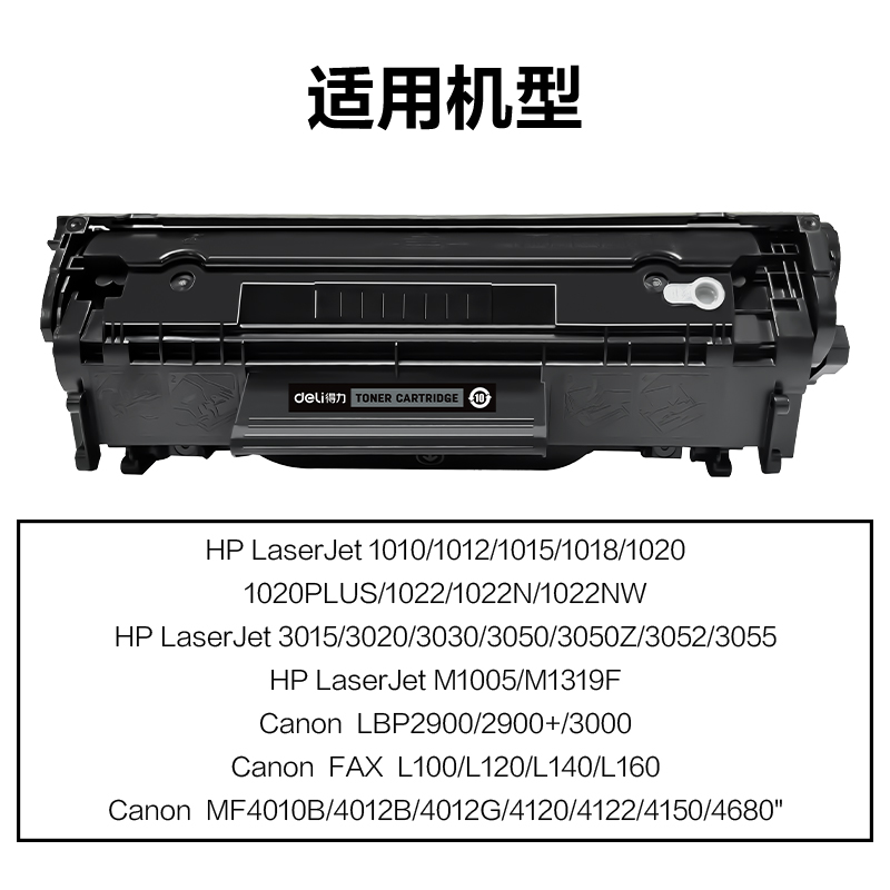 得力(deli)尚影系列兼容M-Q2612AT硒鼓(鼓粉一体)黑色单支装(适用惠普LaserJet 1010/1012/1015/1018/1020/1020PLUS/1022/1022N/1022NW)打印页数:2000(单位:支)