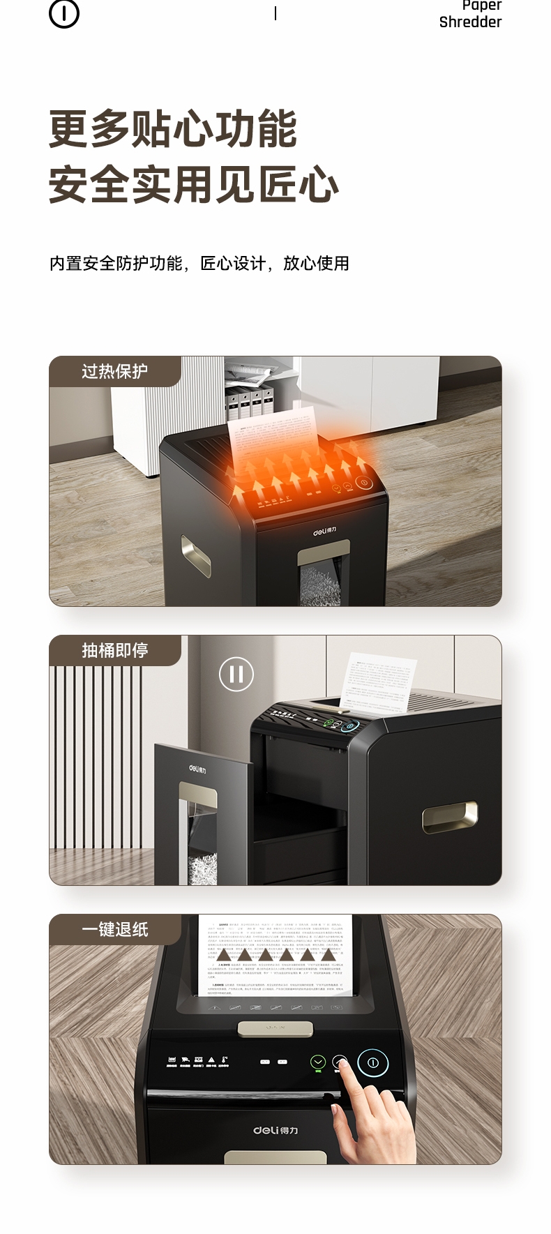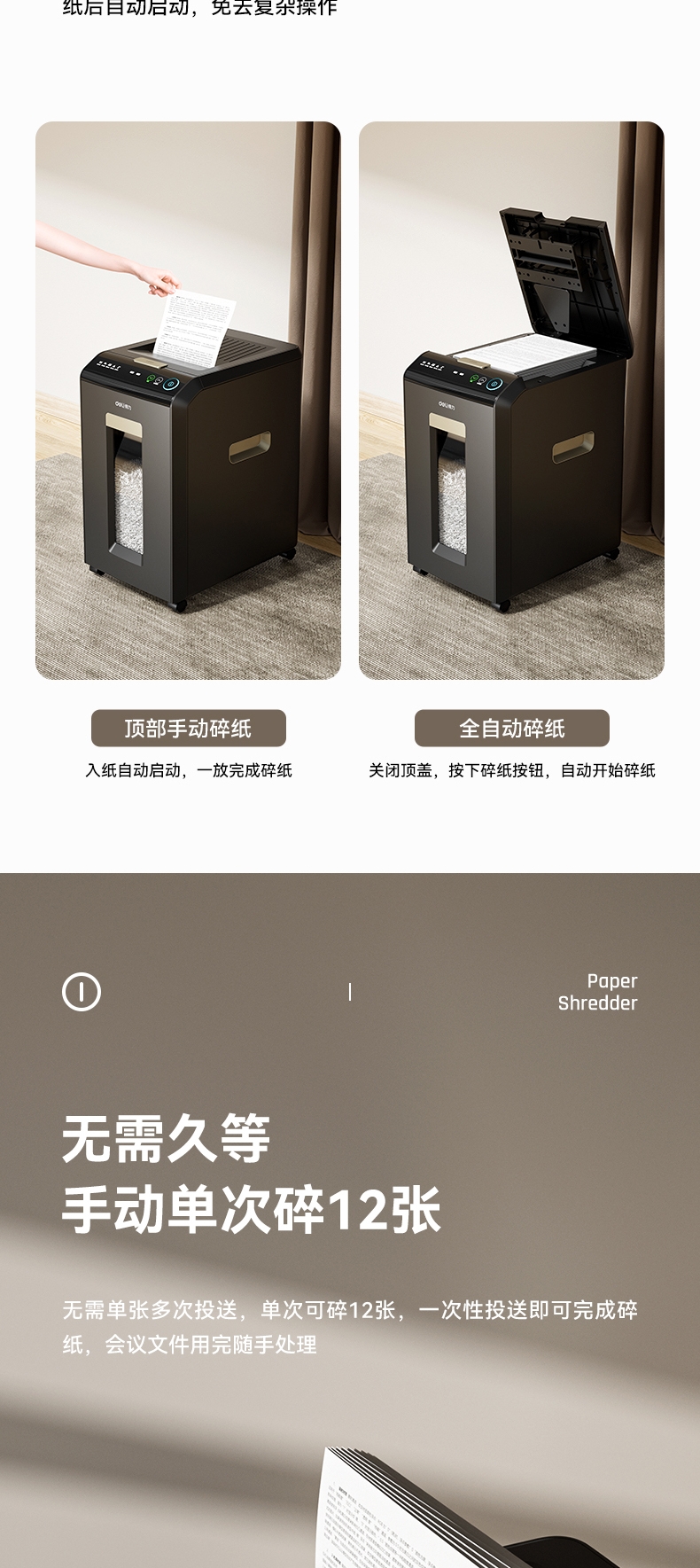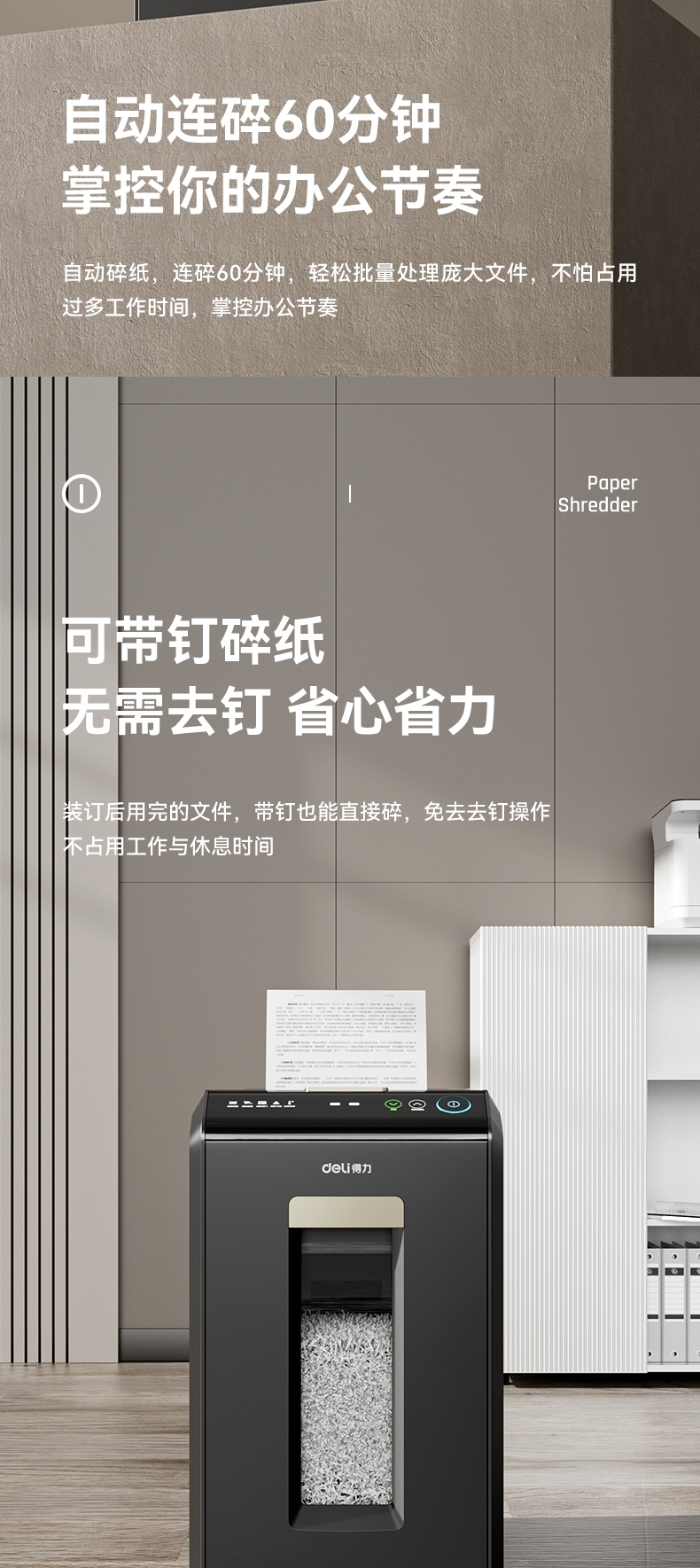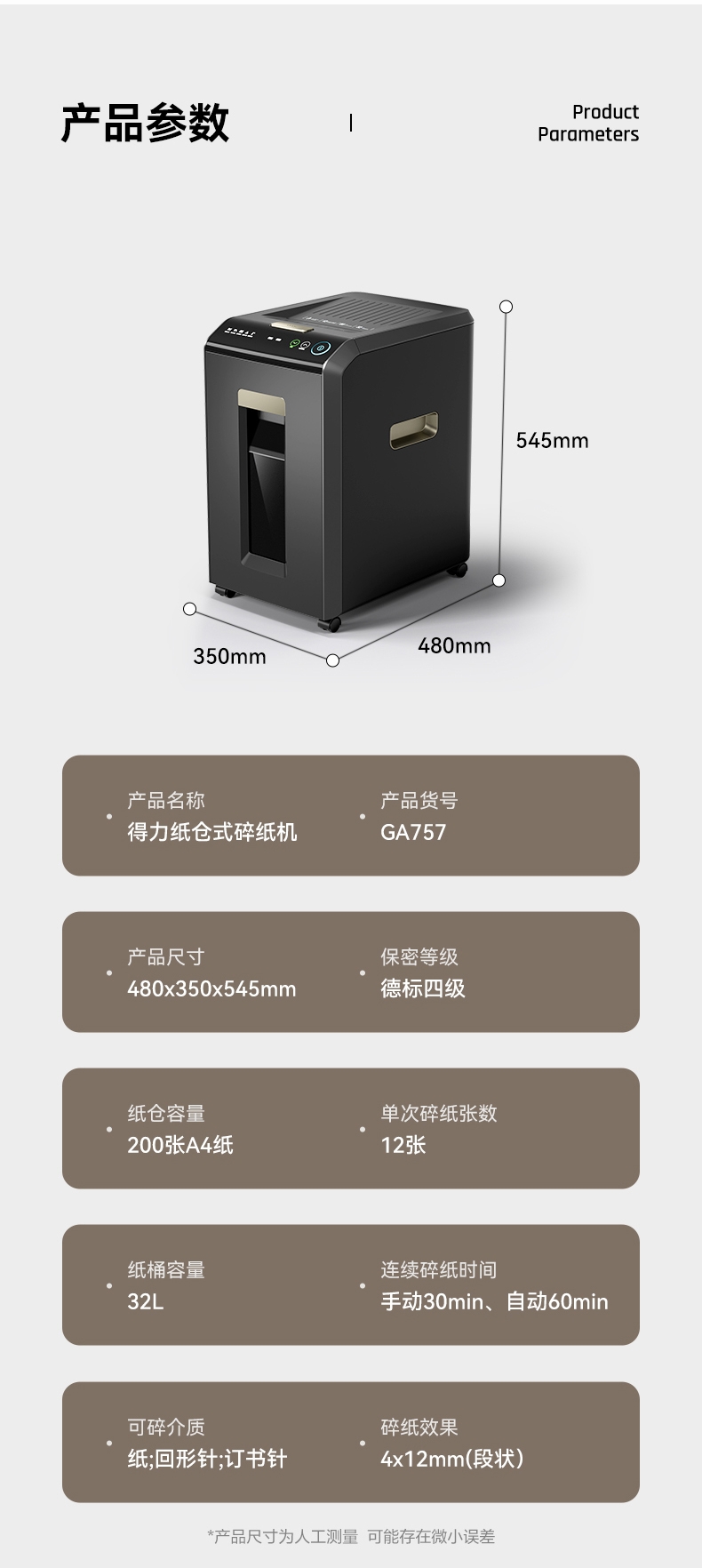 商品标题:得力(deli) GA757碎纸机 办公家用文件粉碎机大功率电动碎纸机办公粉纸机 4级 单次12张 连续60分 32L(台)
