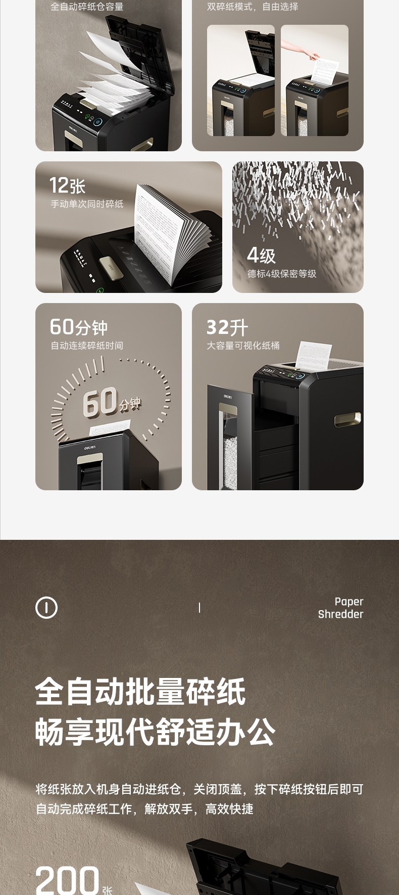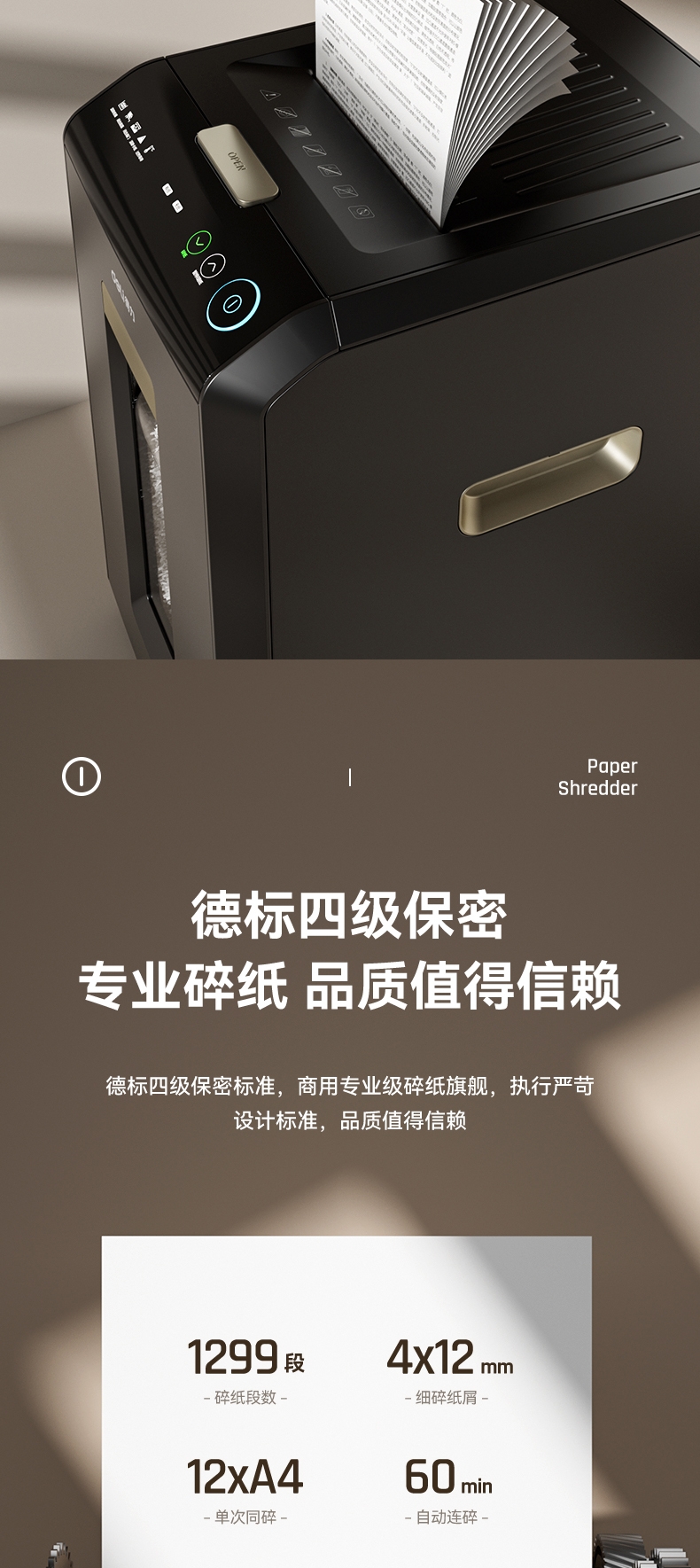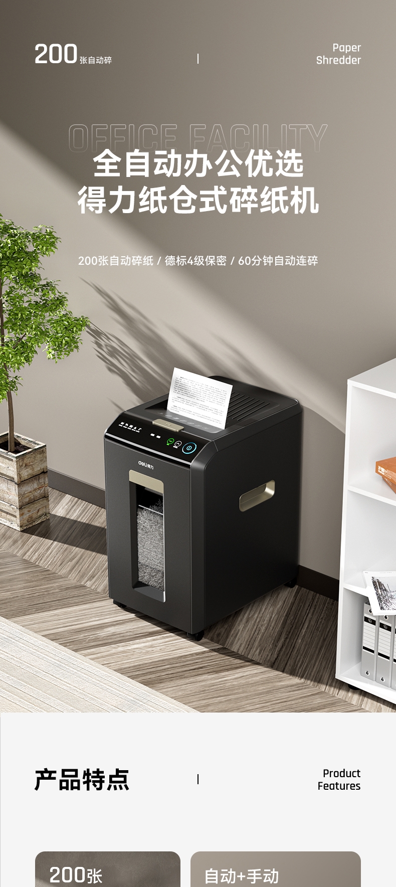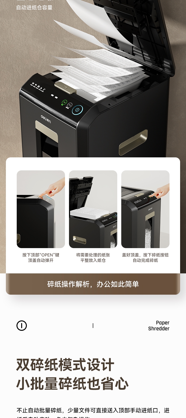 商品标题:得力(deli) GA757碎纸机 办公家用文件粉碎机大功率电动碎纸机办公粉纸机 4级 单次12张 连续60分 32L(台)