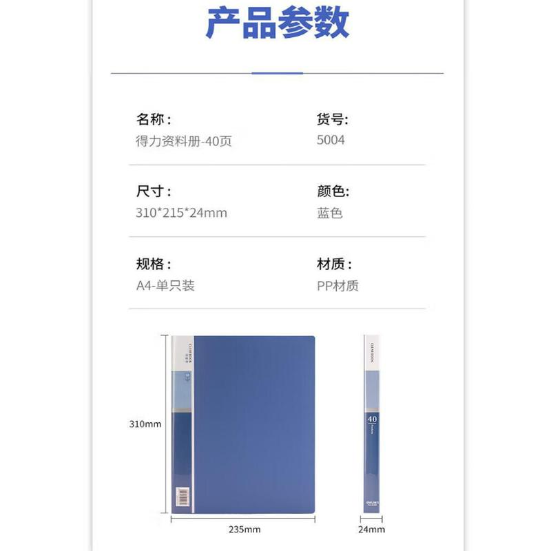 商品标题:得力5004 40页资料册A4-单支装(单位:本)蓝