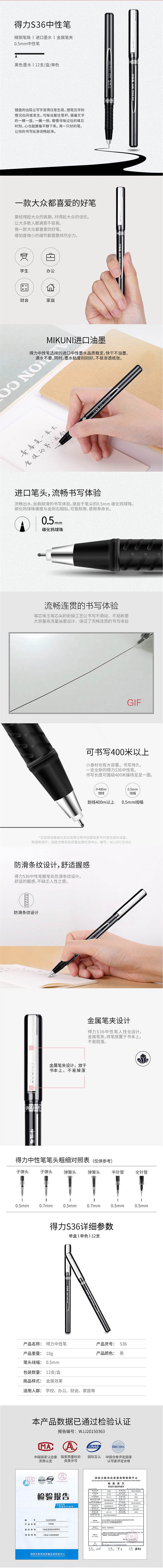 商品标题:得力 S36 签字笔中性笔水笔 0.5mm 12支/盒 (单位:支) 黑色
