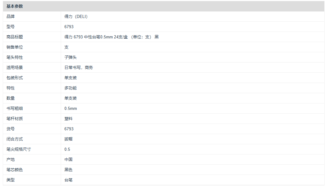 得力(DELI)6793 中性台笔0.5mm 24支/盒 黑(单位:支)