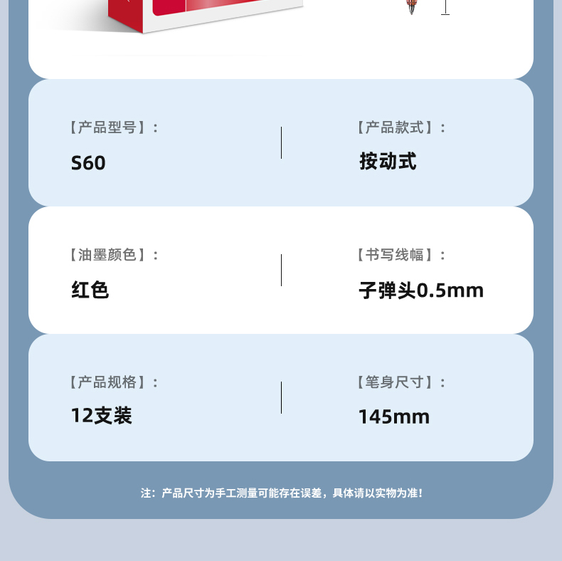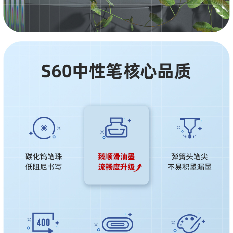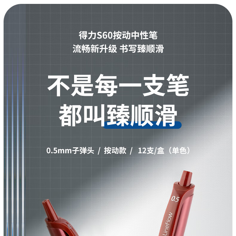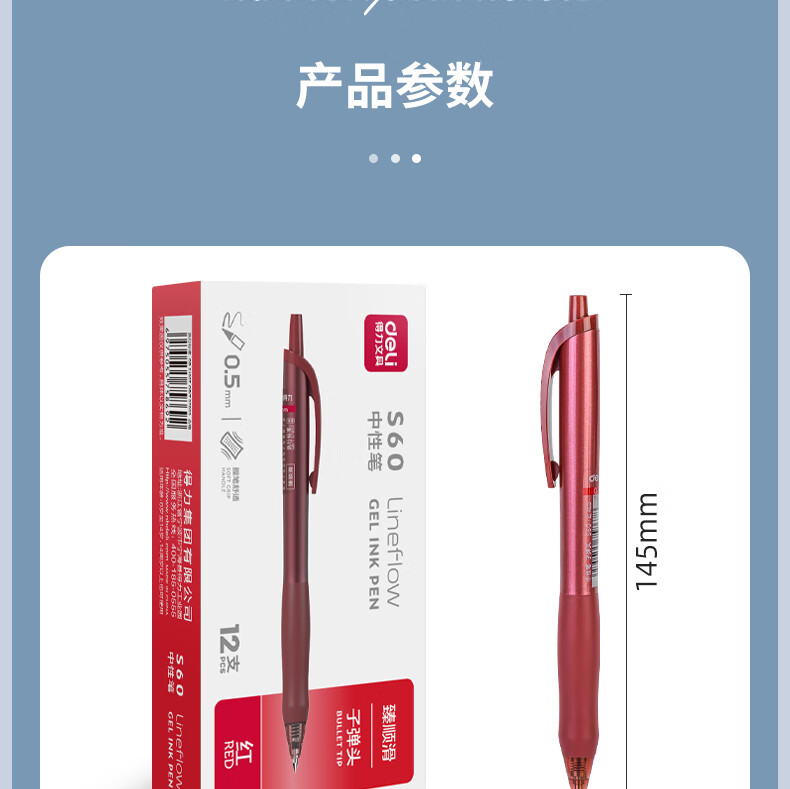 商品标题:得力S60臻顺滑办公中性笔0.5mm子弹头(红)(支)