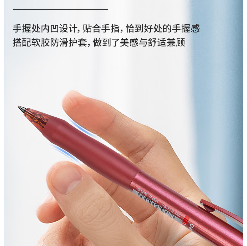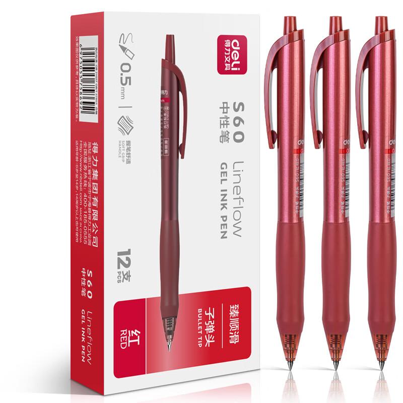 得力S60臻顺滑办公中性笔0.5mm子弹头(红)(支)