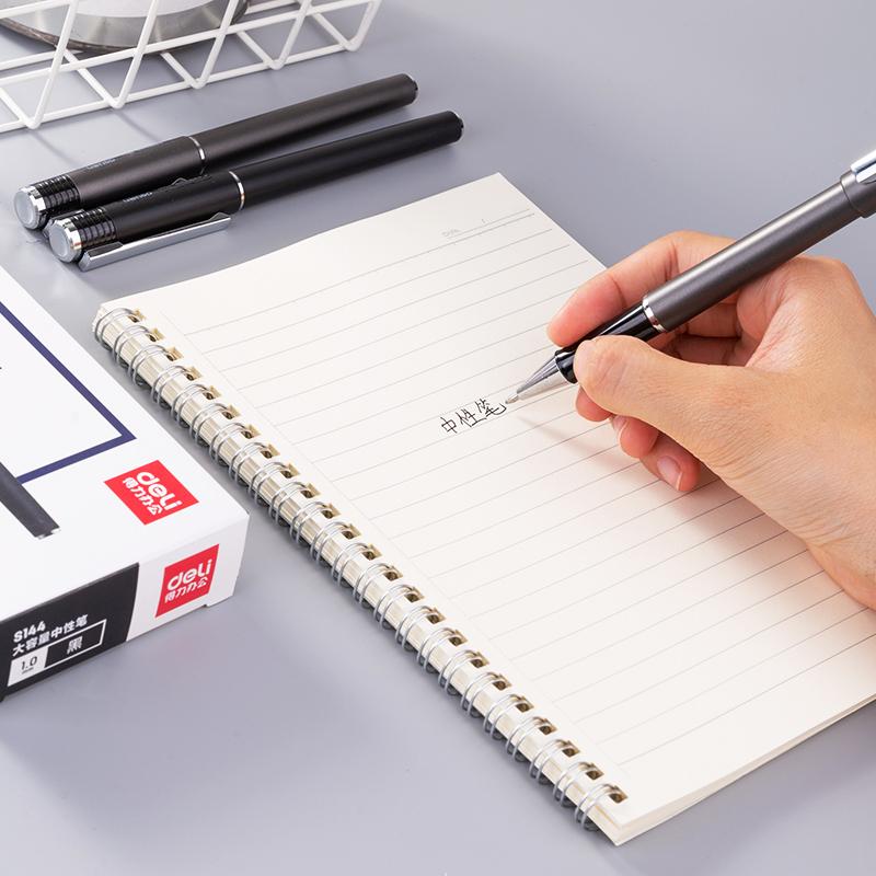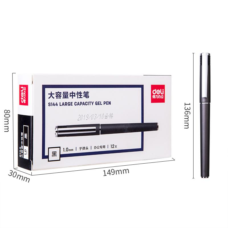 得力(DELI)S144办公大容量中性笔1.0mm子弹头(黑)(单位:支)