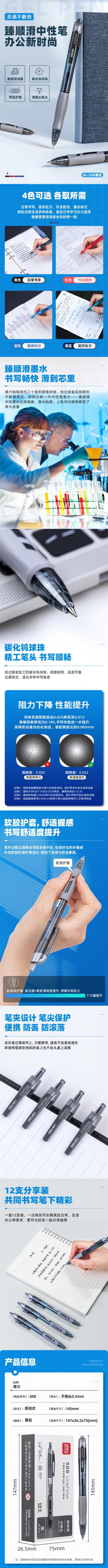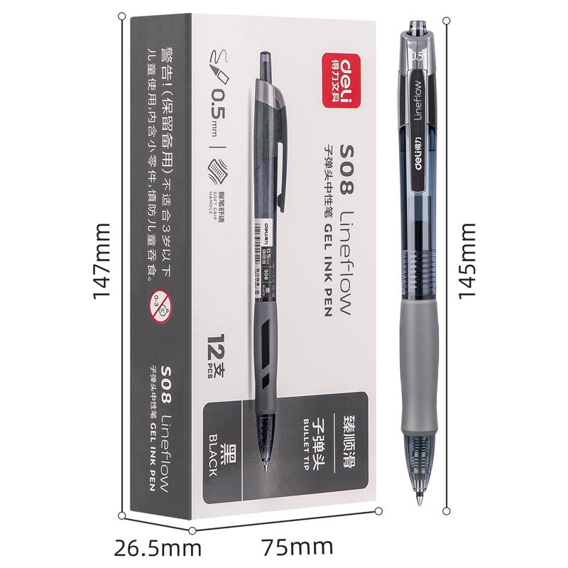 得力S08臻顺滑办公中性笔0.5mm弹簧头(黑色)(单位:支)
