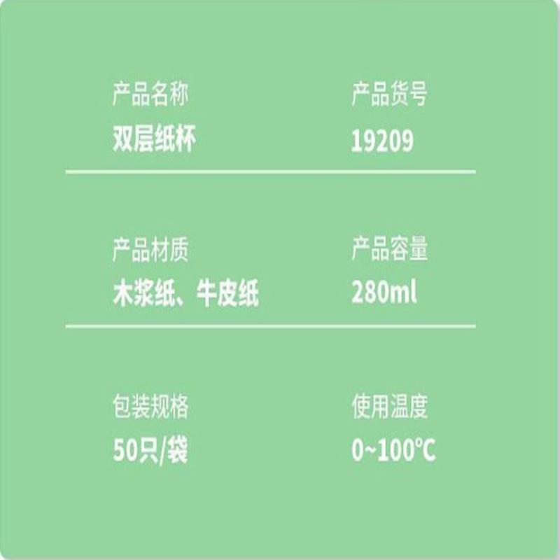 得力19209双层纸杯50只/袋 280ml 棕 (单位:袋)