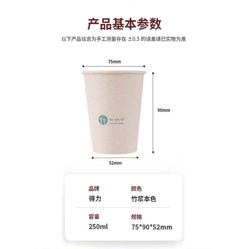 得力19207竹纤维纸杯(250ml)(本色)(50只/袋)