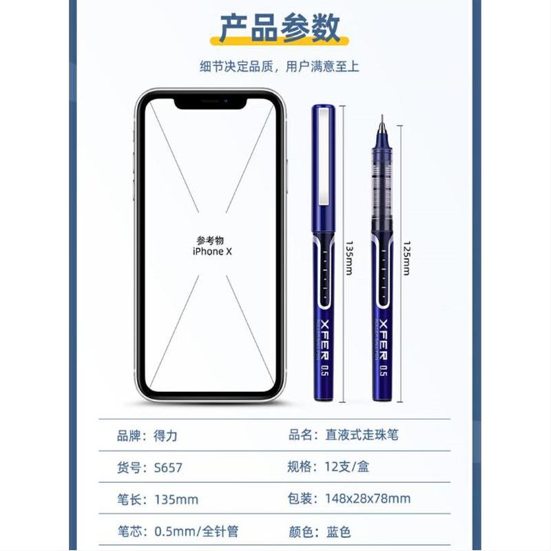 商品标题:得力S657直液式走珠笔(蓝)12支/盒 (单位:支)