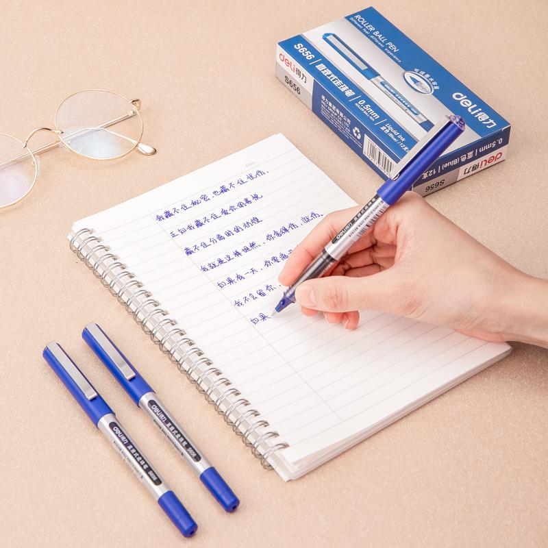 得力 S656 直液走珠笔 水笔0.5mm子弹头(蓝)(单位:支)