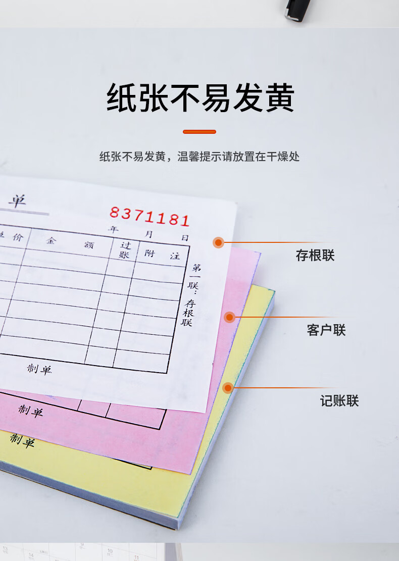 商品标题:得力 9391 三联出库单据 175x87mm (单位:本) 黄